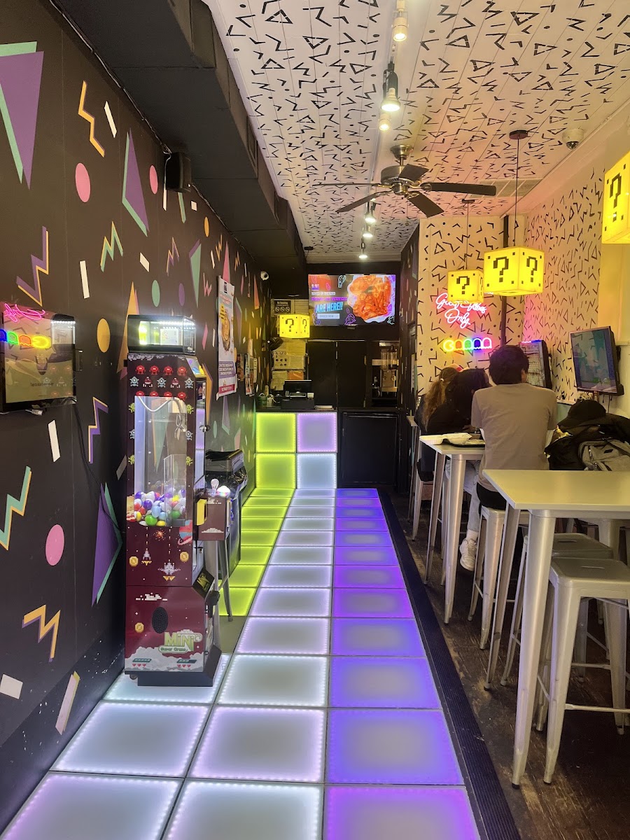 Were you born in the 1980s? Then this place is definitely for you!!! They have a whole bunch of old games you can play for FREE while you wait for food or even while you eat!!! This place was so cute and so tiny so beware that seating is very limited. Each table has four chairs which means four controllers. There is the option to order yourself at the kiosk or with the person standing at the register. This place is definitely for the little nerds if you wanna come and enjoy a bite and play a quick game.